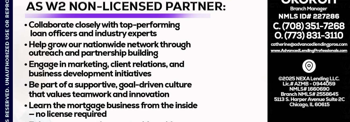 Hi, my name is Advanced Lending Professionals. I’m a Loan Officer with NEXA Mortgage, LLC, offering personalized mortgage solutions, fast customized quotes, great rates and service with integrity.