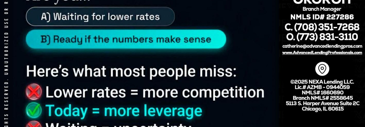 Hi, my name is Advanced Lending Professionals. I’m a Loan Officer with NEXA Lending LLC, offering personalized mortgage solutions, fast customized quotes, great rates and service with integrity.